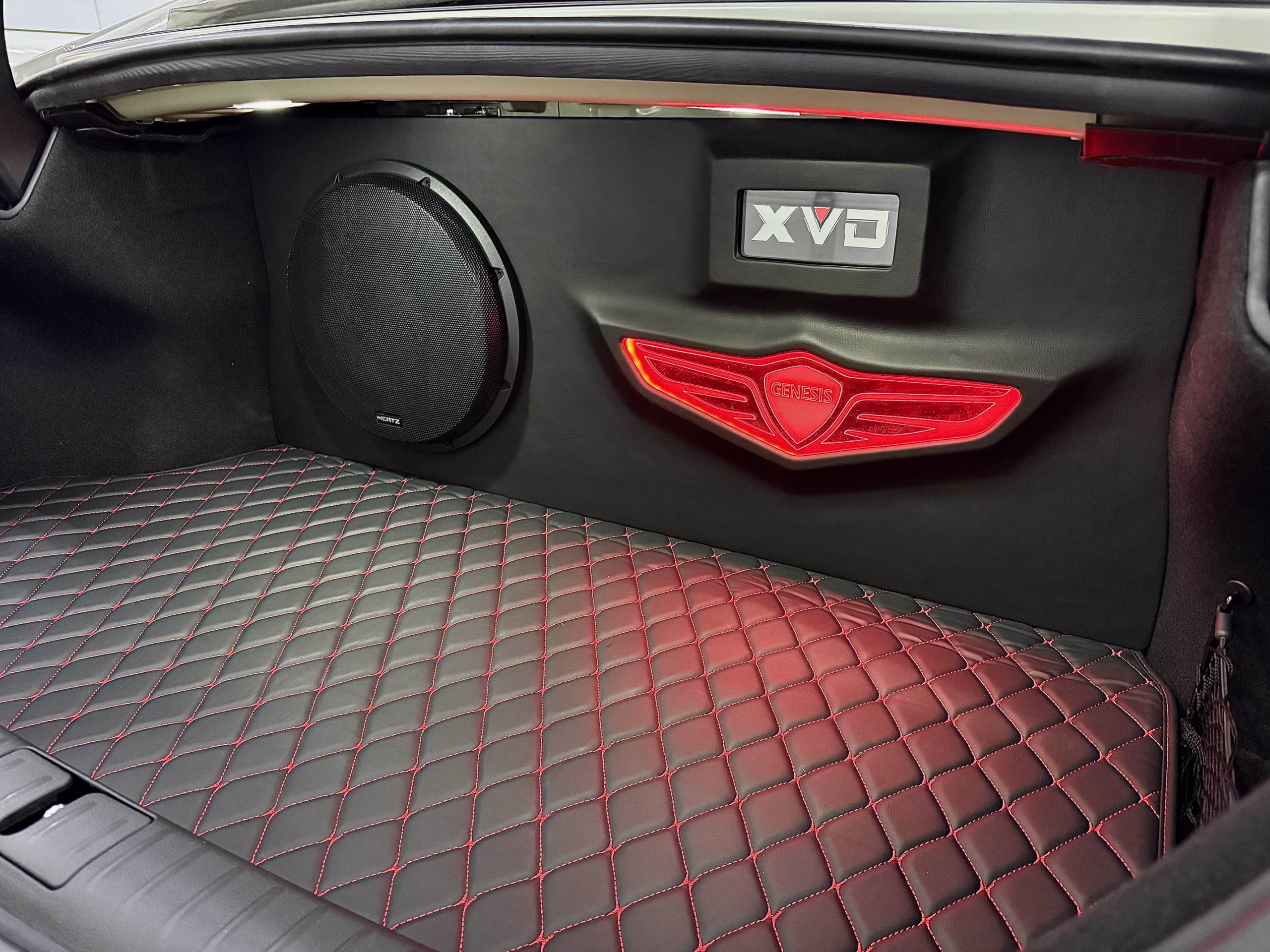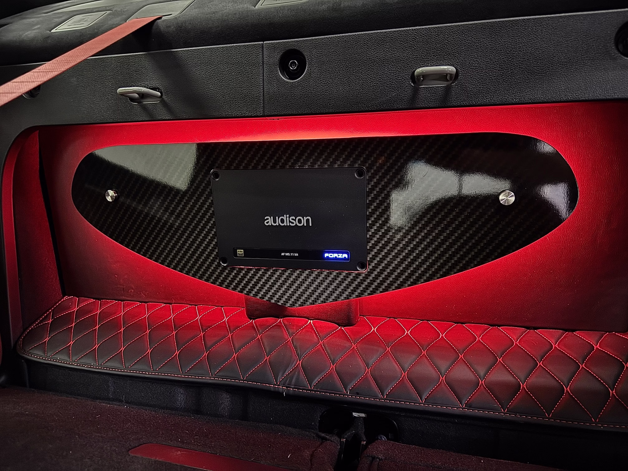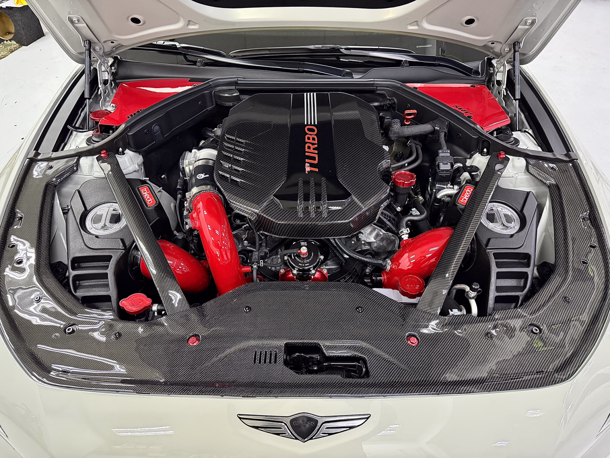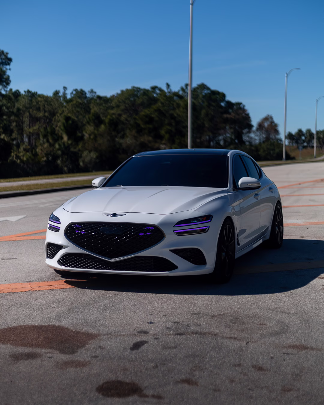 PNPC parts: Purple DRLs, LED intake shrouds, spoiler, black quad tips, wireless charger with wireless Apple CarPlay upgrade, key holder, shift light.